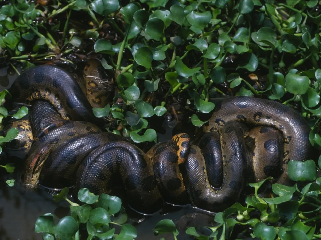 Apesar de seu porte intimidador, a anaconda não é venenosa, alimentando-se de vertebrados aquáticos e terrestres.