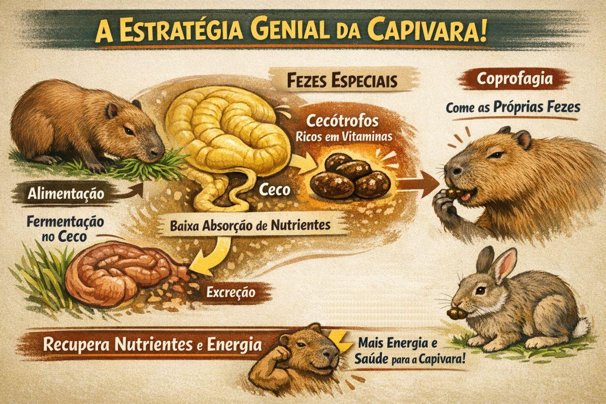 Coelhos fazem algo parecido, mas no caso desse roedor gigante, essa estratégia é parte essencial do sucesso energético do animal.