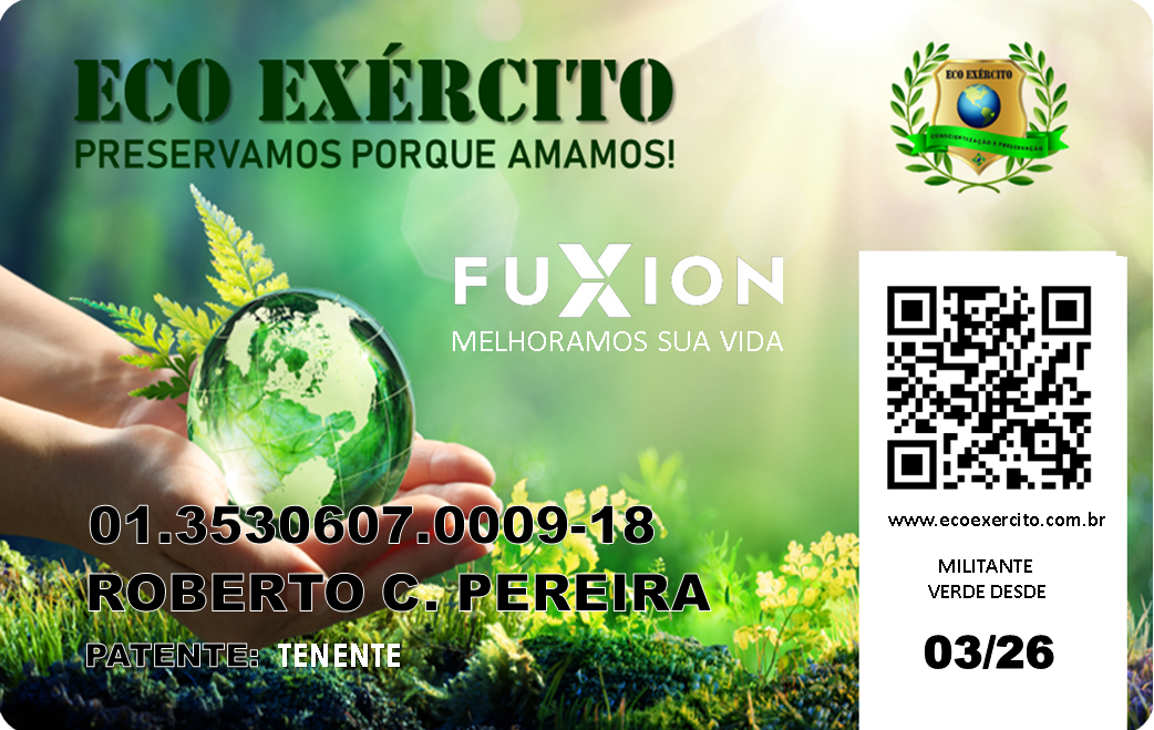 O ambientalista e morador do município de Mogi das Cruzes - SP, Roberto Carlos Pereira, por sua vasta experiência e atividades em projetos de conscientização e preservação do meio ambiente, o General da Natureza Sérgio Mendes a nomeou no mês de março de 2026, Tenente do ECO EXÉRCITO.
