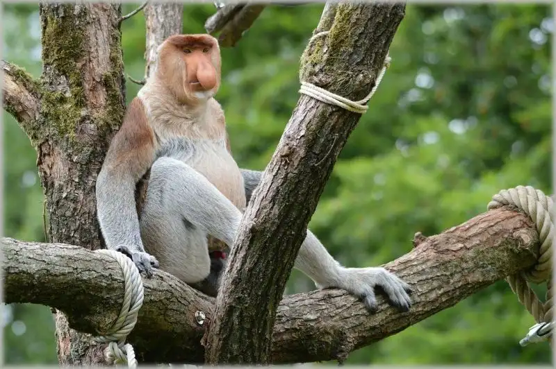 Esses macacos únicos são endêmicos de Bornéu e estão ameaçados devido ao desmatamento desenfreado. Enquanto a maioria de nós pode pensar que os macacos ficam nas árvores, o macaco narigudo também ama a beira do rio e é bastante nadador.